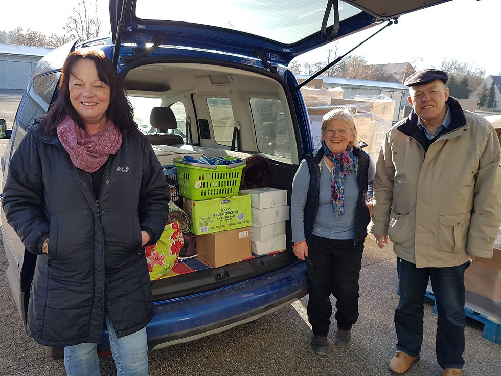 Am 13. Januar füllten ehrenamtliche Helfer des Helferkreises Ismaning direkt im Kleiderlager der Flüchtlingshilfe Erding e.V. zwei PKWs. In erster Linie waren es diesmal Hygieneartikel, aber auch Herrenkleidung, Decken, Bettwäsche und Haushaltswaren.
